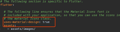 Icons.add是系统提供的图标,创建Flutter项目的时候,pubspec.yaml中默认有如下配置: